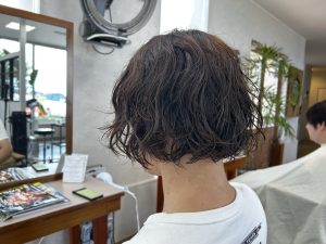 息子の髪をカットして