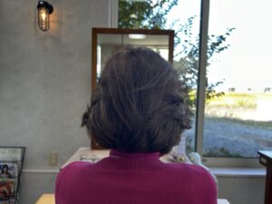 息子の髪をカットして