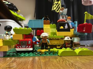 息子の髪をカットして